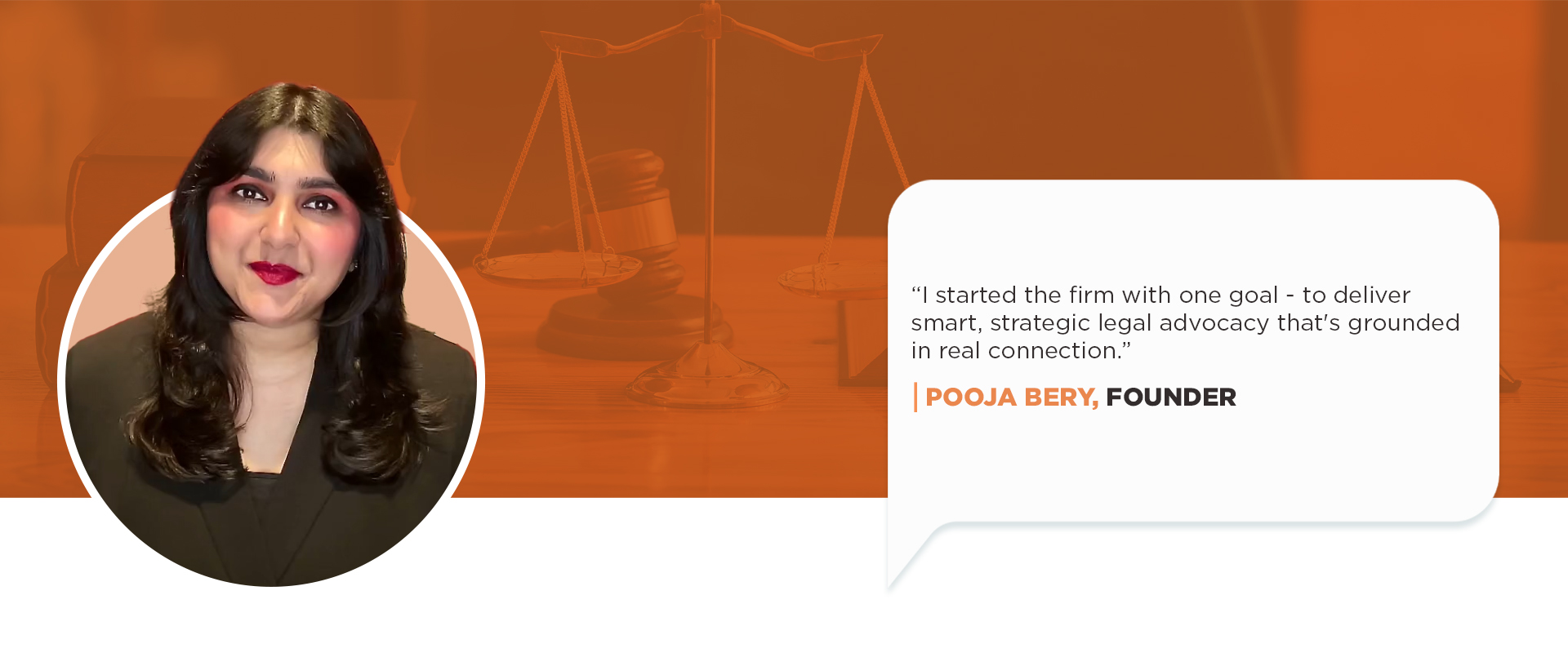 I’m Pooja Bery—and if you’re looking for a lawyer who sugarcoats things, I’m not it. I believe in clear advice, fierce advocacy, and staying two steps ahead in every case. I started Bery Law to do things differently: fewer handoffs, more strategy. I work closely with my clients, bring courtroom focus to every file, and fight like hell when it counts. I’m all in—for your case, your future, and your peace of mind.